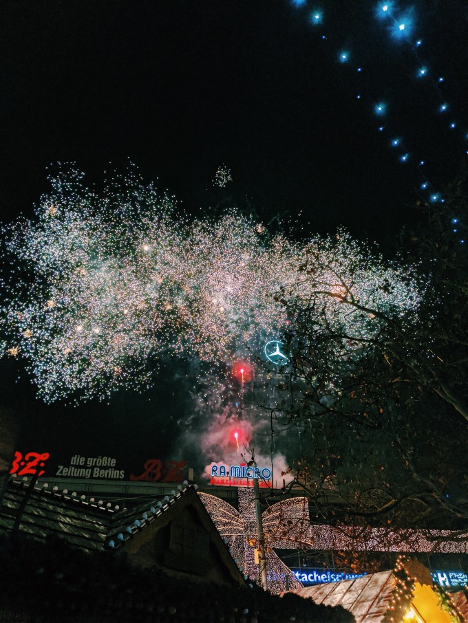 晚上去了柏林威廉皇帝纪念教堂旁边的圣诞市场,是 2016 年发生卡车撞人袭击的地方。圣诞市场很热闹,Podium 下面一角摆满了纪念三年前离开人世的人的照片、花环以及蜡烛。摆在中间的是一位红发女人的照片,旁边是两瓶酒,而照片里她笑得开怀——她的家人朋友一定很爱她。
